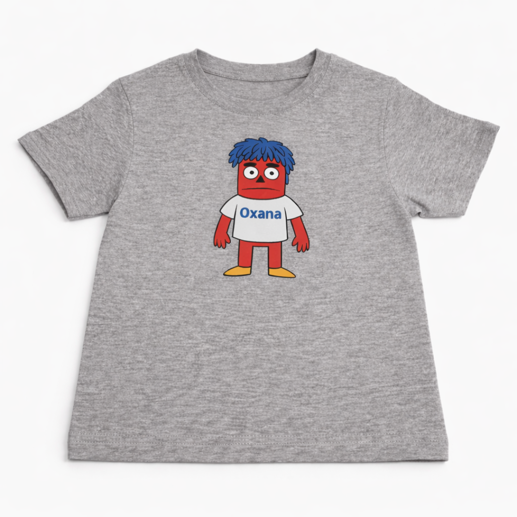 Kinder T-Shirt mit Motiv Oxana aus dem Kinderkabarett. Hergestellt aus weicher, hautfreundlicher Baumwolle und geeignet für Alltag, Kindergeburtstag oder Veranstaltungen mit Kinderanimation. Erhältlich in verschiedenen Größen und Farben. Ideal als Geschenk oder Erinnerung an ein besonderes Event.